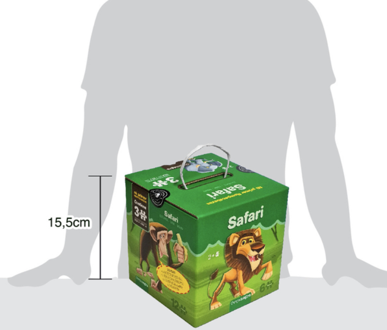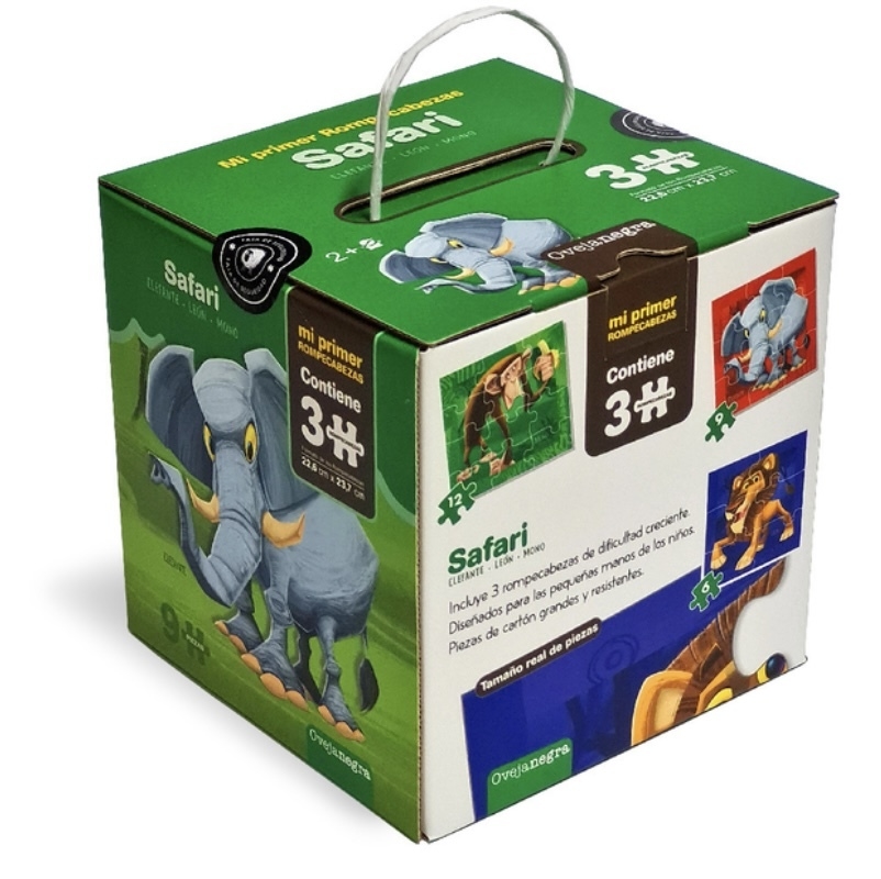 Incluye 3 rompecabezas (Elefante, León, Mono) de dificultad creciente. Diseñados para las pequeñas manos de los niños. Piezas de cartón grande y resistentes. Desarrollan: la destreza motora fina, la resolución de problemas, la coordinación mano/ojo y la imaginación.
